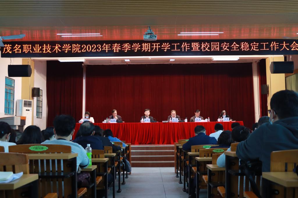 3月2日下午,学校在北校区礼堂召开2023年春季学期开学工作暨校园安全稳定工作大会。学校领导班子,全体在职在编教职员工参加。会议由党委委员、副院长谈毅主持。