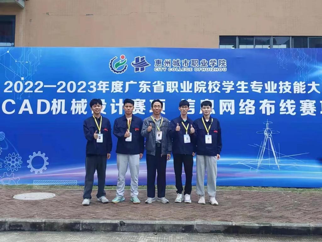 近日,由广东省教育厅主办的2022-2023年度广东省职业院校学生专业技能大赛“CAD机械设计”赛项在惠州城市职业学院举办。大赛吸引了来自全省高职院校的106支队伍参与角逐,我校机电系派出2021级的黄姜豪、陈铭凯、陈勤杰、谢玉文四位同学组成两个代表队,在巫均平、袁智权、赖辉老师的悉心指导下,喜获该赛项二等奖1项、三等奖1项。