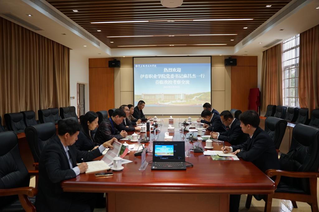 3月31日,伊春职业学院党委书记麻昌杰带队一行4人到我校调研交流。学院党委副书记、院长张庆热情接待了来访客人。