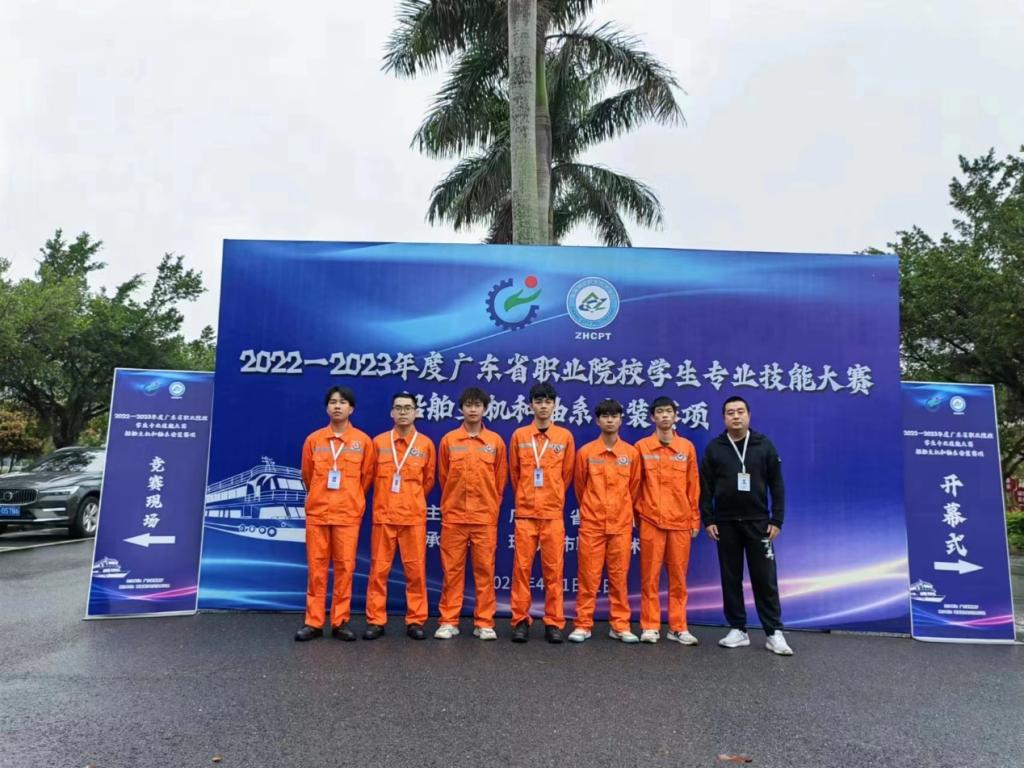 4月1日至2日,由广东省教育厅主办的2022-2023年度广东省职业院校学生专业技能大赛“船舶主机和轴系安装”赛项在珠海城市职业技术学院举办。我校机电系派出2021级的黄海东、欧阳冰冰、吴龙、陈华彬、欧杰鸿、邓志超6位同学组成2个代表队参赛,在王开、华雷和蔡美丹老师的悉心指导下,荣获该赛项三等奖。