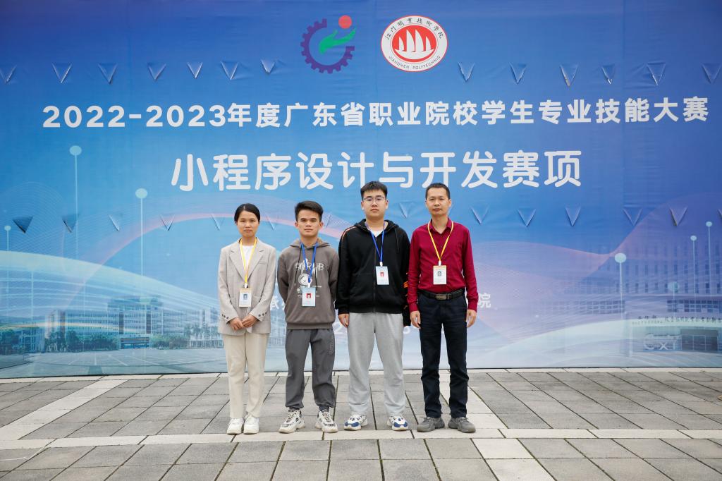 近日,2022-2023年度广东省职业院校学生专业技能大赛(高职组)“小程序设计与开发”赛项在江门职业技术学院举行。我校选派沈大旺工作室的周明庚和陈煜同学参加比赛,在沈大旺、陈胜娣老师的悉心指导下,周明庚和陈煜分别荣获一等奖、二等奖。