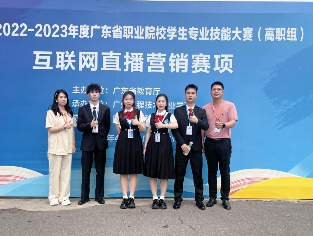 4月22日,2022-2023年度广东省职业院校学生专业技能大赛互联网直播营销赛项(高职组)在广州工程技术职业学院如期举行,本次比赛共有来自全省66支代表队参赛。经过二轮比赛的角逐,由经济管理系张耿锋和陈伟霞两位老师指导的梁耀雄、张鸿燕、江雅诗和陈钊鸿四位同学组成的代表队,最终获得三等奖的好成绩。