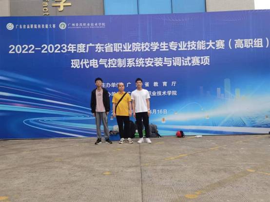 近日,由广东省教育厅主办的2022-2023年度广东省职业院校学生专业技能大赛(高职组)“现代电气控制系统安装与调试”大赛在番禺职业技术学院成功举办。我校由机电信息系电气自动化技术专业苏明豪、卢苇睿同学组成的代表队与省内各高校的78支队伍同台竞技,在曾宪桥、王开老师的指导下,不畏强手,努力奋战,最终荣获该赛项二等奖。