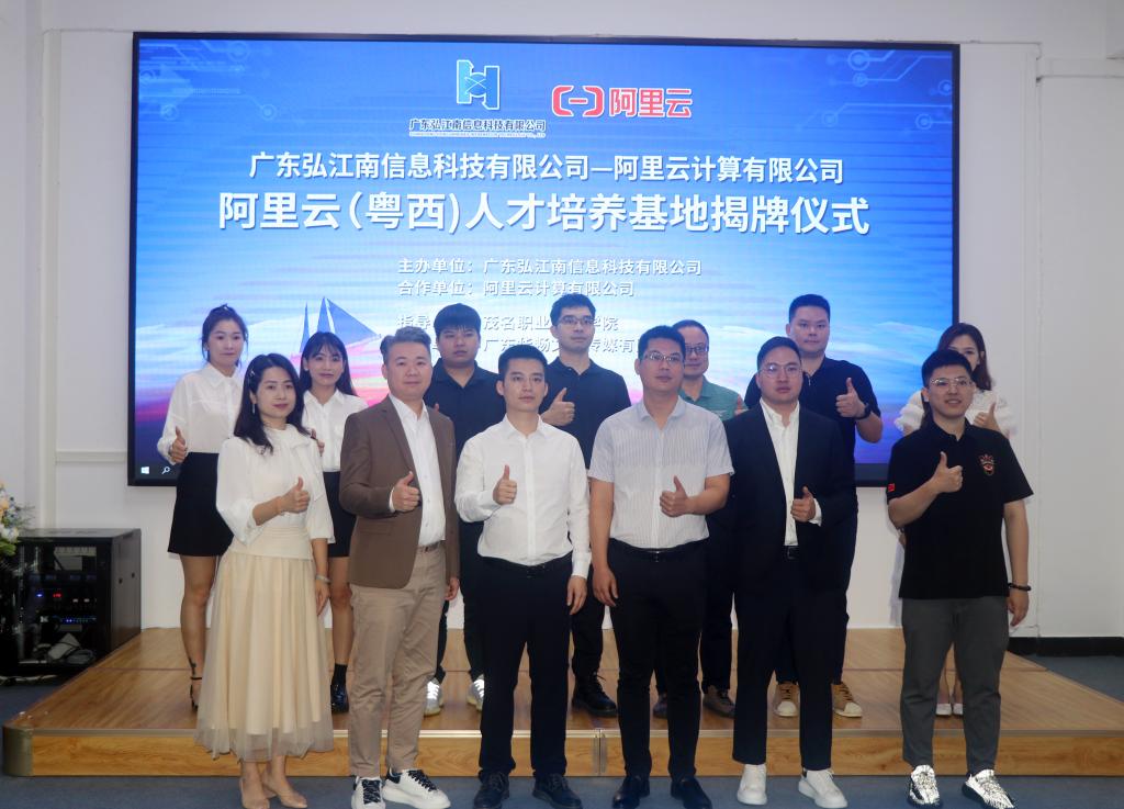 近日,由广东弘江南信息科技有限公司与阿里云计算有限公司携手建立的阿里云(粤西)人才培养基地揭牌,揭牌仪式在学校数字电商产业学院举行。