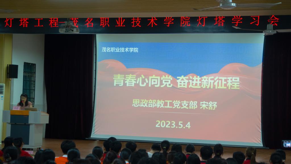 为深入学习贯彻习近平总书记对青年工作的重要讲话、重要指示精神,教育引导广大团员青年了解党的光辉历史、感悟党的初心使命、领会党的创新理论,5月4日下午,茂名职业技术学院“青春心向党 奋进新征程”灯塔学习会在北校区举行。各级团学组织干部代表、青马学员共1000余人通过线上线下参加活动。