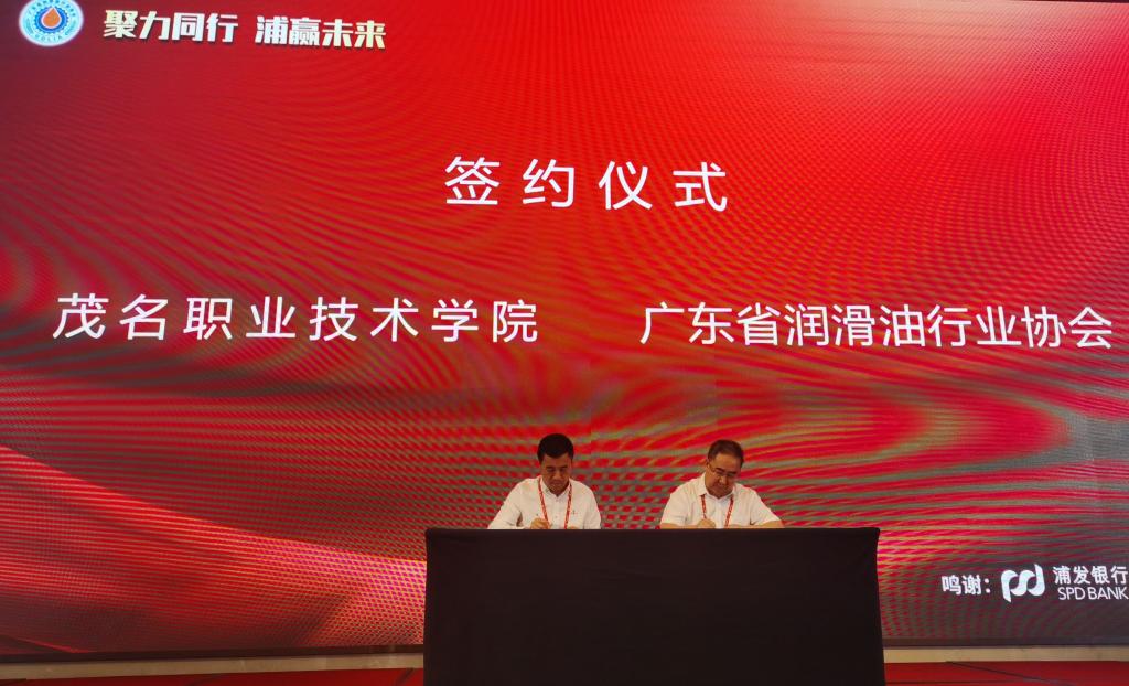 在签约仪式上,张庆与广东省润滑油行业协会会长范承东签订产学研合作协议,这是学校持续深化产教融合、校企合作,搭建产学研合作平台取得的又一重要成果。