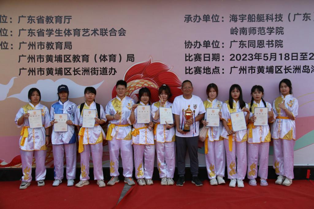 5月18日-21日,经过4天精彩对决,由广东省教育厅指导、广东省学生体育艺术联合会主办的2022年广东省大、中学生舞龙舞狮锦标赛(补赛)圆满落下帷幕。我校龙狮队再创佳绩,荣获男子传统南狮季军、女子自选舞龙季军、女子传统南狮第五名、男子自选舞龙第八名、团体总分第六名等奖项。