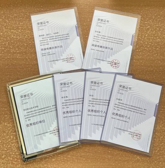 由教育部职业院校文化素质教育指导委员会主办,广东省职业院校图书馆情报工作指导委员会和深圳职业技术学院图书馆承办的2022年全国职业院校阅读文化创意设计展示活动已圆满结束,日前进行了颁奖。本次活动共有618所院校组织参与,9556件作品通过审核,经各组织单位推选、专家网络初评、专家总评研议等环节,最后评选出301件作品进入“成果展示名单”。本次活动中我校计算机工程系 21数媒颜祯妍、温好儿、张晓雯同学设计的《赴万里锦书》以及倪钊鹏同学设计的《爱而学》两件作品被评选为“阅读传播创意作品”,林珍梅、钟阳和冯福琴老师分别被评为“优秀组织个人”,我校被评为“优秀组织单位”。