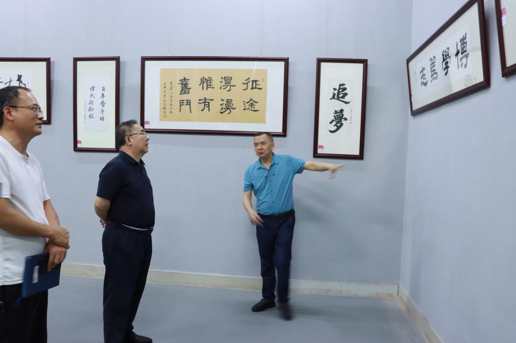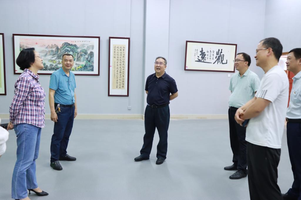 6月12日,学校“学习二十大 奋进新征程”首届书画大赛作品在北校区图书馆一楼多媒体室展出。党委副书记、院长张庆,党委委员、副院长曾萍以及部分中层领导干部参观了作品展。