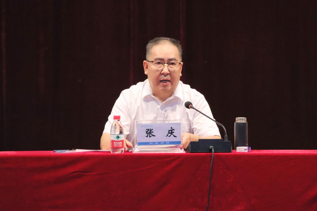 张庆院长作讲话。讲话中,张庆提出了三点要求:一是要提高站位,充分认识师德建设的重要性和紧迫性。全体教师要结合今年师德建设主题是“躬耕教坛,强国有我”,以习近平总书记讲话精神为指导,努力培养堪当民族复兴重任的栋梁之才。二是要对标对表,正确把握师德建设的内涵。张庆从什么是师德,什么是“四有好老师”,对师德的内涵作出了诠析,并从《高等学校教师职业道德规范》、《教育部关于高校教师师德失范行为处理的指导意见》等文件中进一步对师德建设的内涵进行解读。三是要综合施策,彻实提高师德建设的成效。各单位(部门)要按师德教育活动方案要求,以“躬耕教坛,强国有我”为主题,以赤诚之心,奉献之心,仁爱之心,潜心教书育人,彻实提高全校教师的师德素养。