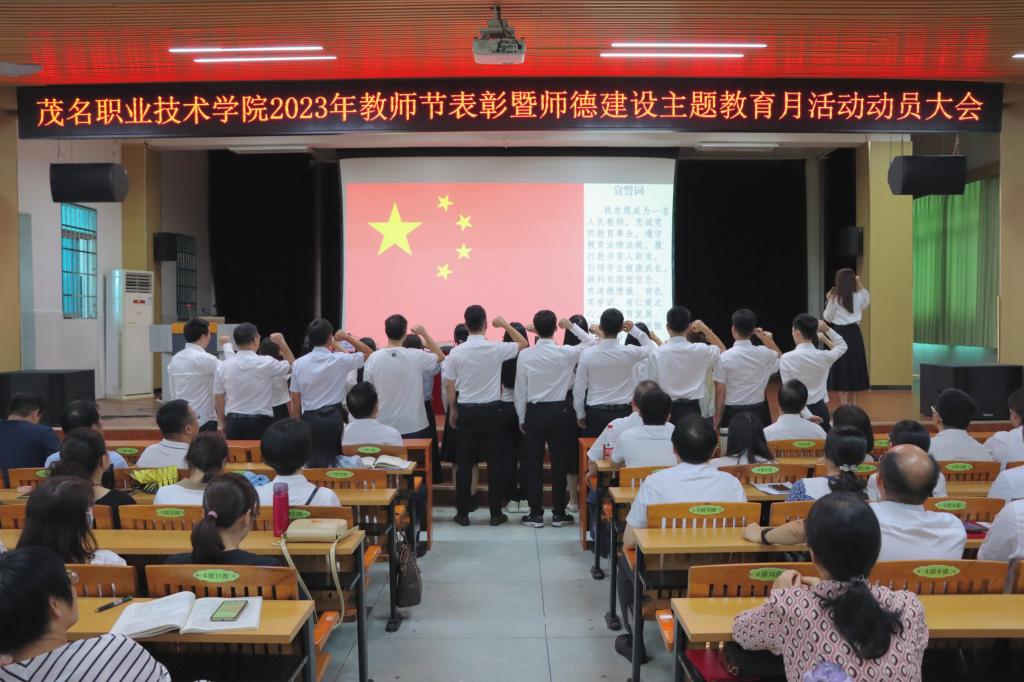 9月7日下午,在第39个教师节来临之际,学校在北校区礼堂召开2023年教师节表彰暨师德建设主题教育月活动动员大会。今年教师节的主题是:“躬耕教坛,强国有我”。学校领导、各系(部)教职工、机关行政部门副科以上干部、获奖教师代表及新入职教职工参加了会议。会议由杨云副院长主持。