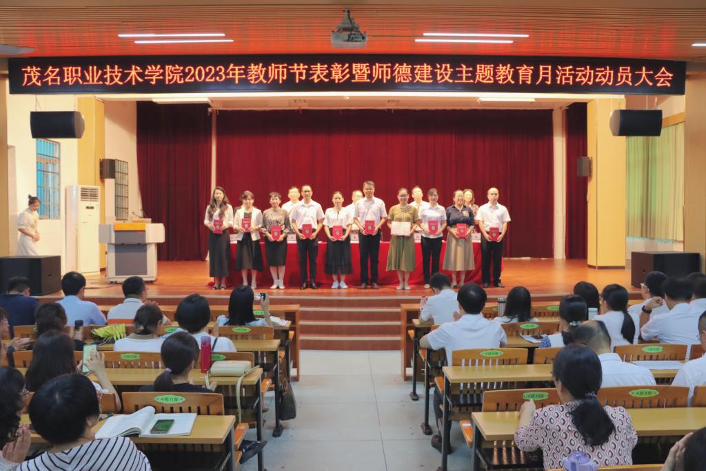 会上,学校党委委员、副院长曾萍同志宣读《茂名职业技术学院关于公布2022年度考核优秀等次人员名单的通知》;学校党委委员、纪委书记钟茹宣读《关于公布2022年师德主题征文及微视频征集活动获奖名单的通知》;学校党委委员、副院长谈毅同志宣读《关于表彰2022-2023学年优秀教师、优秀教育工作者、优秀辅导员、优秀班主任的决定》。学校领导对获奖的先进个人进行了颁奖表彰。