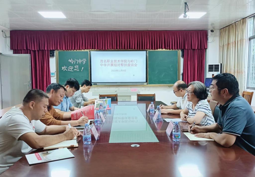 为进一步落实我校对电白区岭门中学基础教育帮扶工作,11月8日下午,学院党委委员、副院长曾萍带队到电白区岭门中学开展基础教育帮扶工作。教务处负责人,校企办有关人员,以及电白区岭门中学校长陈旭华、副校长陈得春和相关部门负责人参加了交流座谈会。会议由陈旭华主持。
