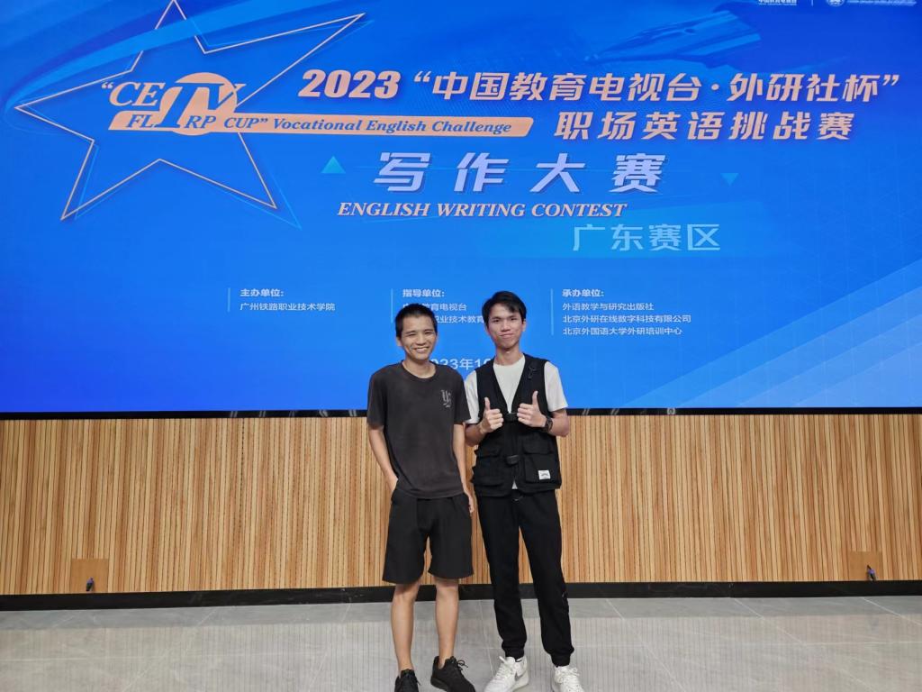 大赛由中国教育电视台、广东省职业技术教育学会、外语教学与研究出版社联合主办,广州铁路职业技术学院承办,来自全省62所高校的179名学生参加了比赛。大赛强化职业特色,采取现场比赛的方式进行,英语专业和非英语专业学生进行同题写作,不分组别评奖。选手需在两小时内完成两篇作文,其中一篇为商务信函,另一篇为图表作文。赛前,社科基础部徐雪和林伟丽老师对参赛选手进行了精心指导,从逻辑思维能力、数据分析能力和英文写作技巧等方面进行培训,选手的职业英语能力得到了大幅提升。比赛中,两位选手沉着应战、稳定发挥,最终取得了优异的成绩。