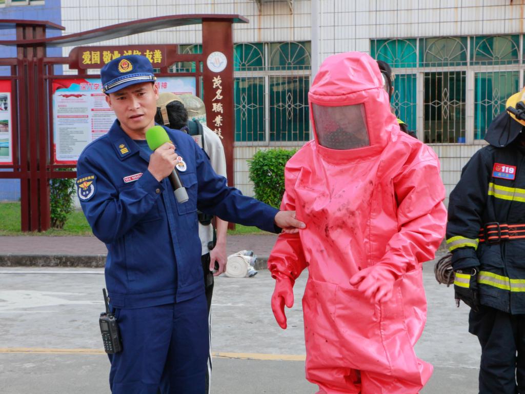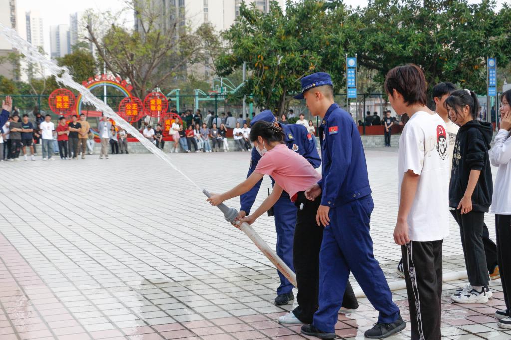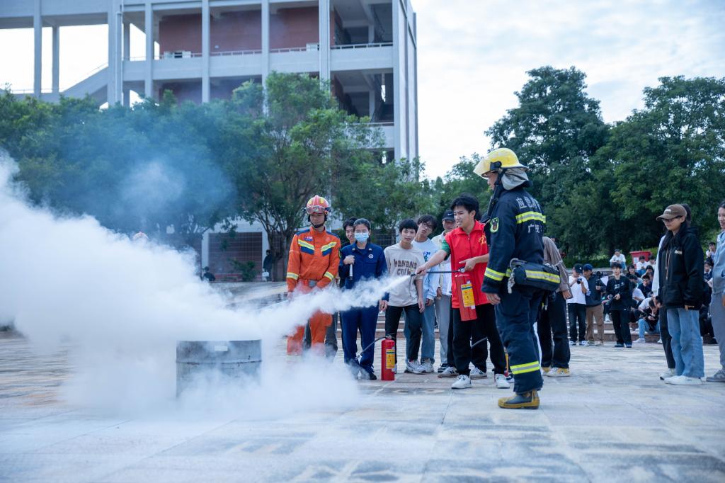 学生处负责人谢深根强调,消防安全教育是新生入学教育中安全教育板块的一项重要内容,学校高度重视消防安全知识的普及。他向同学们提出了三点要求:一是认真学习消防知识,提高消防安全意识,掌握火灾自救逃生的方法;二是提高安全防范意识,不使用大功率电器,安全用电;三是要自觉爱护校园内的各种消防设施。