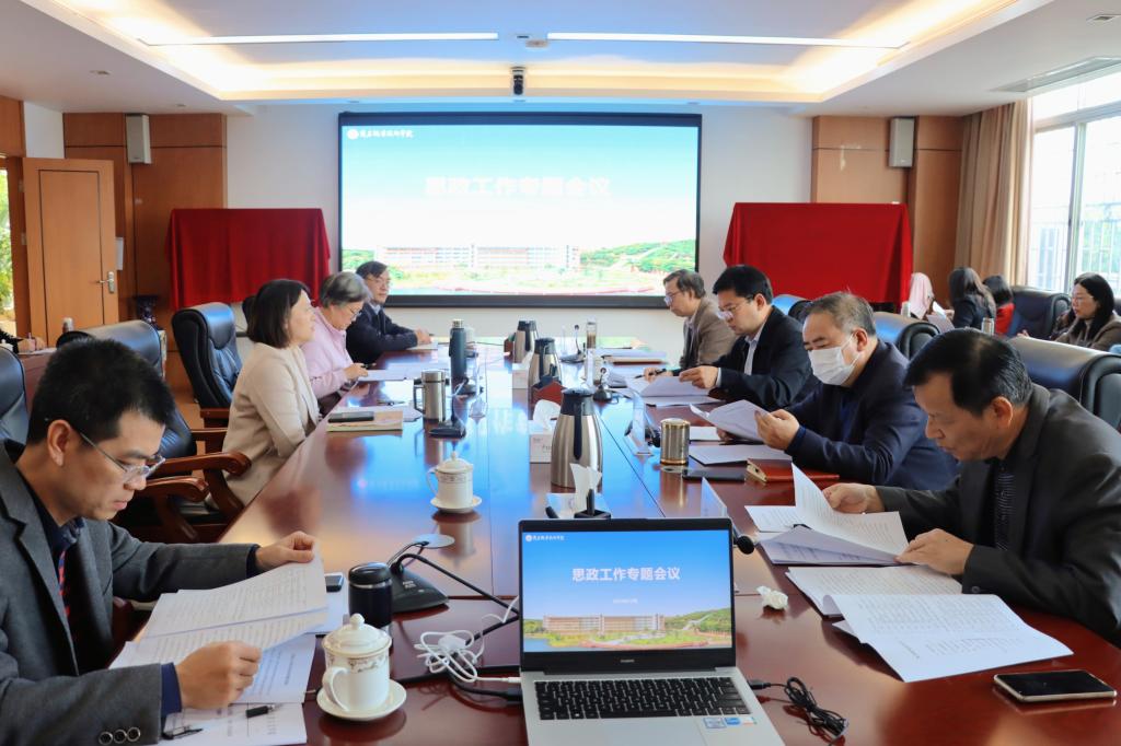 近日,我校召开思想政治工作专题会议。会议听取了马克思主义学院的工作汇报,传达学习了《普通高等学校马克思主义学院建设标准(2023年版)》,分析研究马克思主义学院当前存在的问题与困难,审议茂名职业技术学院课程思政示范高职院校建设方案。会议由党委书记扶国主持,学校领导班子成员、各单位、各部门负责人,各系党总支副书记出席会议。