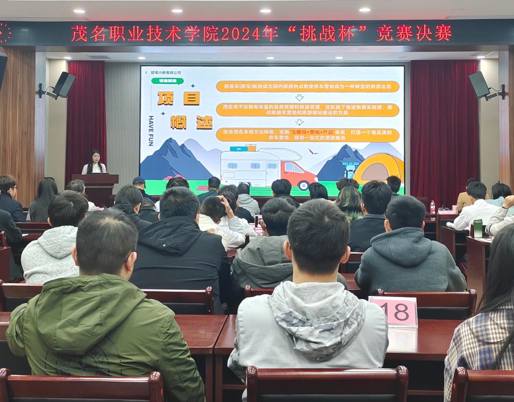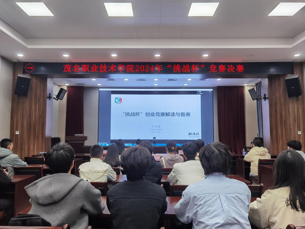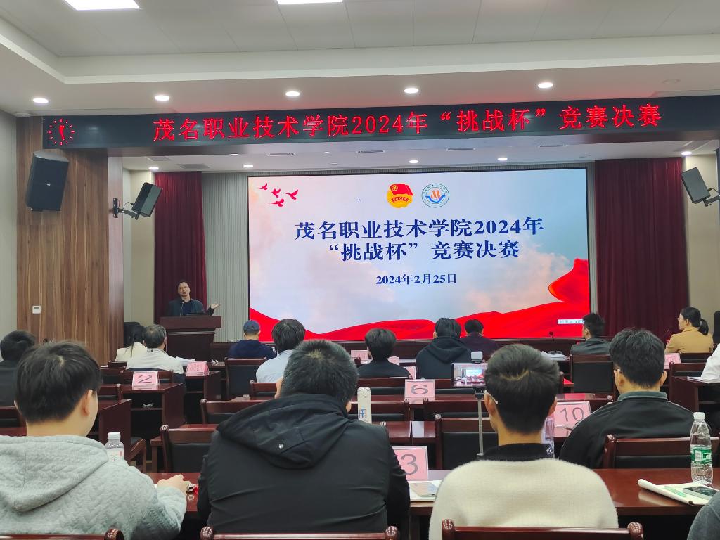 为进一步组织动员我校大学生创新发展,为推动地方高质量发展贡献智慧, 2月25日,茂名职业技术学院2024年“挑战杯”竞赛决赛在北校区图书馆报告厅举行。各系部“挑战杯”竞赛项目负责人、各参赛师生团队参加比赛。