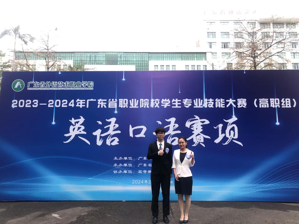近日,广东省职业技能大赛赛场传来喜讯,由我校经济管理系阮斯媚老师和2021级商务英语专业王耿骏同学组成的师生团队在“英语口语”赛项中荣获三等奖。