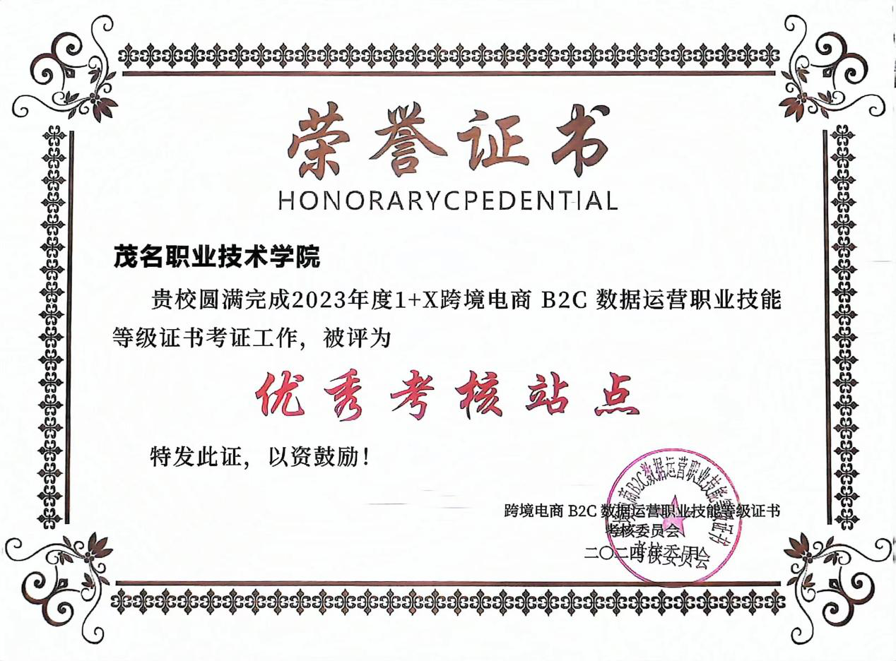 近期,在跨境电商B2C数据运营职业技能等级证书专家委员会对1+X证书制度试点2023年度考核中,我校在“1+X”跨境电商B2C数据运营职业技能等级证书考证工作中表现出色,获得了“优秀试点院校”及“优秀考核站点”的荣誉,经济管理系刘峻兵、江静、何靖雯三位教师被评为“优秀指导老师”。