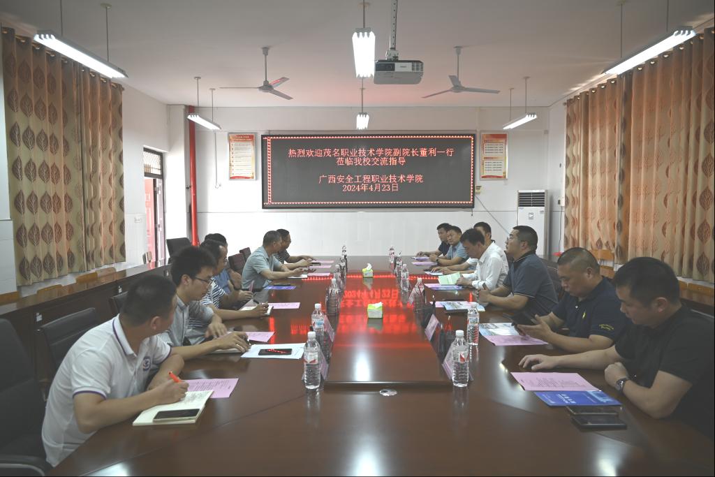董利对广西安全工程职业技术学院的热情接待表示衷心感谢,介绍了我校基本情况和取得的成效。董利表示广西安全工程职业技术学院的专业建设特色明显,取得成效显著,值得我校学习和借鉴。希望双方在建筑消防、化工安全等专业建设方面开展合作,实现优势互补、资源共享。