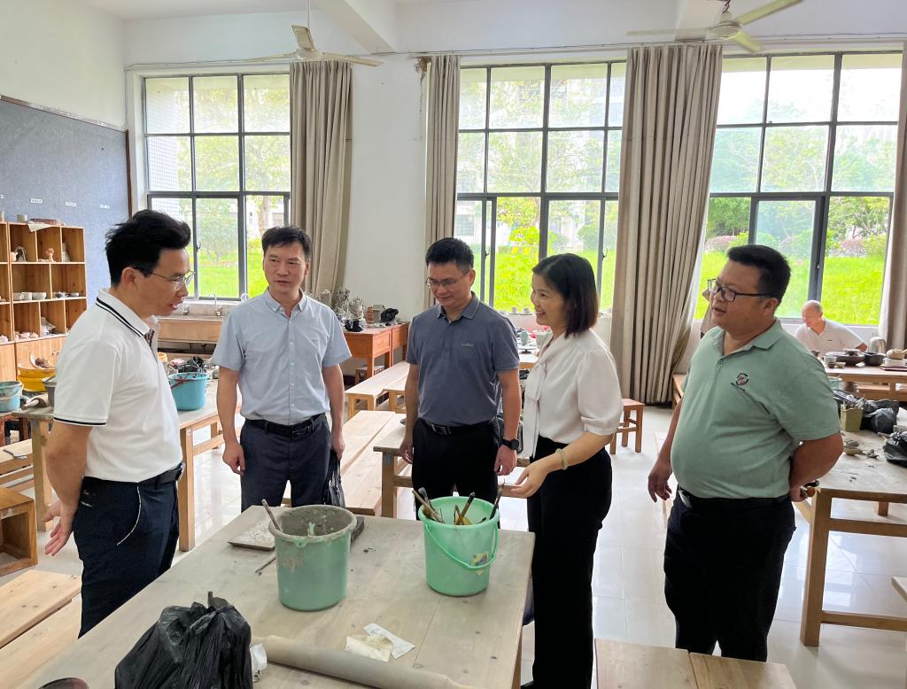 双方与会人员围绕专业建设、美育教育、教学管理等问题进行深入交流。座谈结束后,董利一行考察参观书画、陶瓷、跳花棚等美育教育实训室。(文/图:教务部)