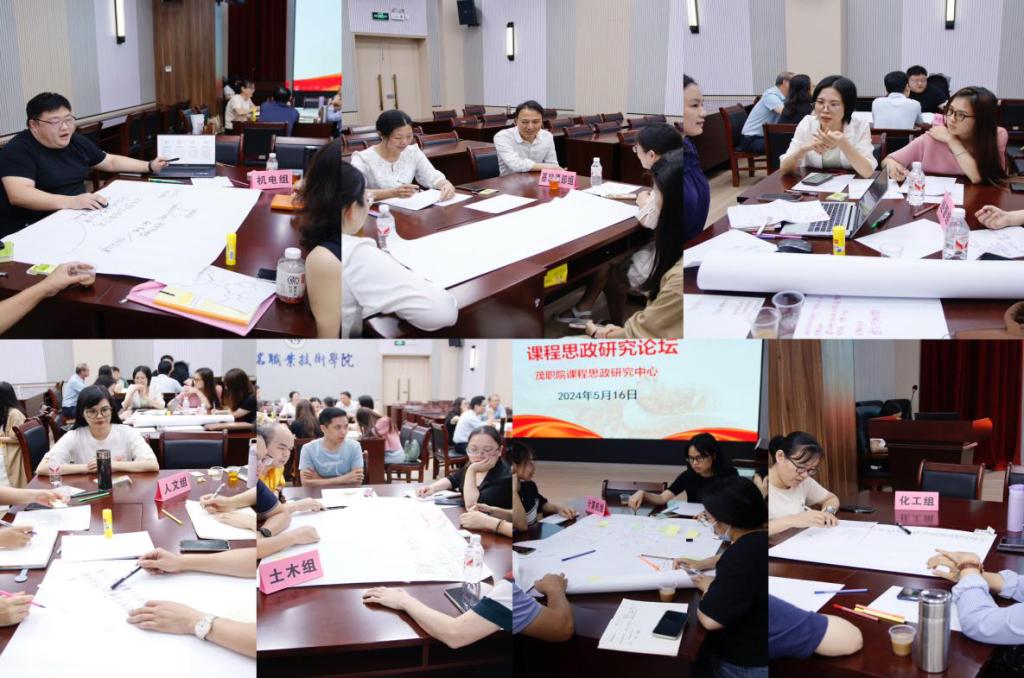 讨论后进行展示汇报。基础课部副主任黄丽:数字化环境下,通过数字化教材、数字情景、数字人、VR技术等的应用,打造融合新质生产力理念的公共基础课程。机电组安勇成:在新质生产力视角下,课程思政改革需重构目标、创新内容、改革方法和优化评价。土木组钟庆红:在数字化背景下通过“三共三全”模式建设建筑类专业课程思政资源库。化工组侯兰凤:围绕新质生产力、课程思政与化工专业课程之间的关系应进行梳理,制订未来行动计划。经管组阮斯媚:围绕新质生产力三要素探索新质生产力驱动下课程思政案例研究,创新劳动者关系,升级改造人才培养。人文组冼浪:数字化环境下优化“课程思政”内容供给,让教师成为“数字化+课程思政”建设的主力军。计算机组陈胜娣:利用数字化技术整合课程思政教学素材和资源,扩充课程思政资源库建设。