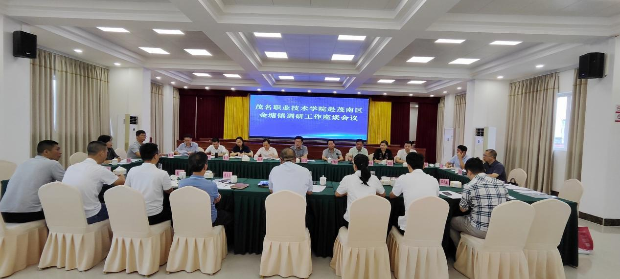 茂南区政协副主席、金塘镇党委书记黄建业,金塘镇人大主席杨永南等热情接待了扶国一行,并在镇政府六楼会议室召开调研座谈会。会上,黄建业从基本情况、产业项目、基层治理、民生设施等方面介绍了金塘镇近年来良好的发展势头,并希望学校能够在人才、智力、科技等方面给予支持,共同解决金塘镇发展过程中的一些困难和问题,推动金塘镇高质量发展。
