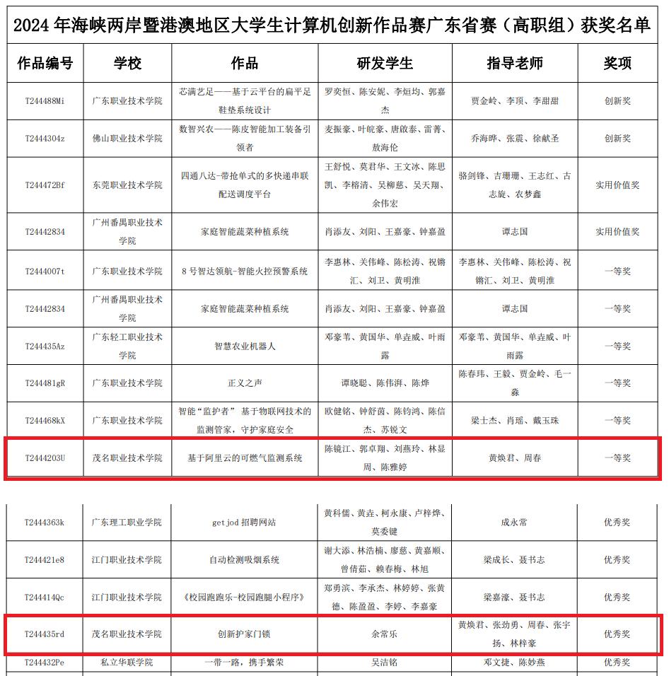 6月16日,由广东省计算机学会主办的2024(第十九届)海峡两岸暨港澳地区大学生计算机创新作品赛广东赛区在广东职业技术学院(高明校区)成功举办。高职组共有84支队伍参加比赛,学校计算机工程系2支参赛队伍在比赛中分别获得一等奖和优秀奖的好成绩。