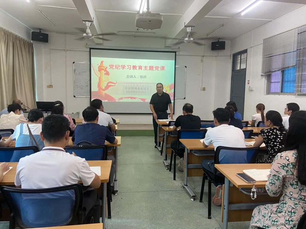 为深入开展党纪学习教育,确保党纪学习教育融入日常、抓在经常。学校党委副书记、院长张庆深入经济管理系,为经管系全体党员教师作专题党课辅导。党课由经管系主任、教工党支部书记崔萍主持。