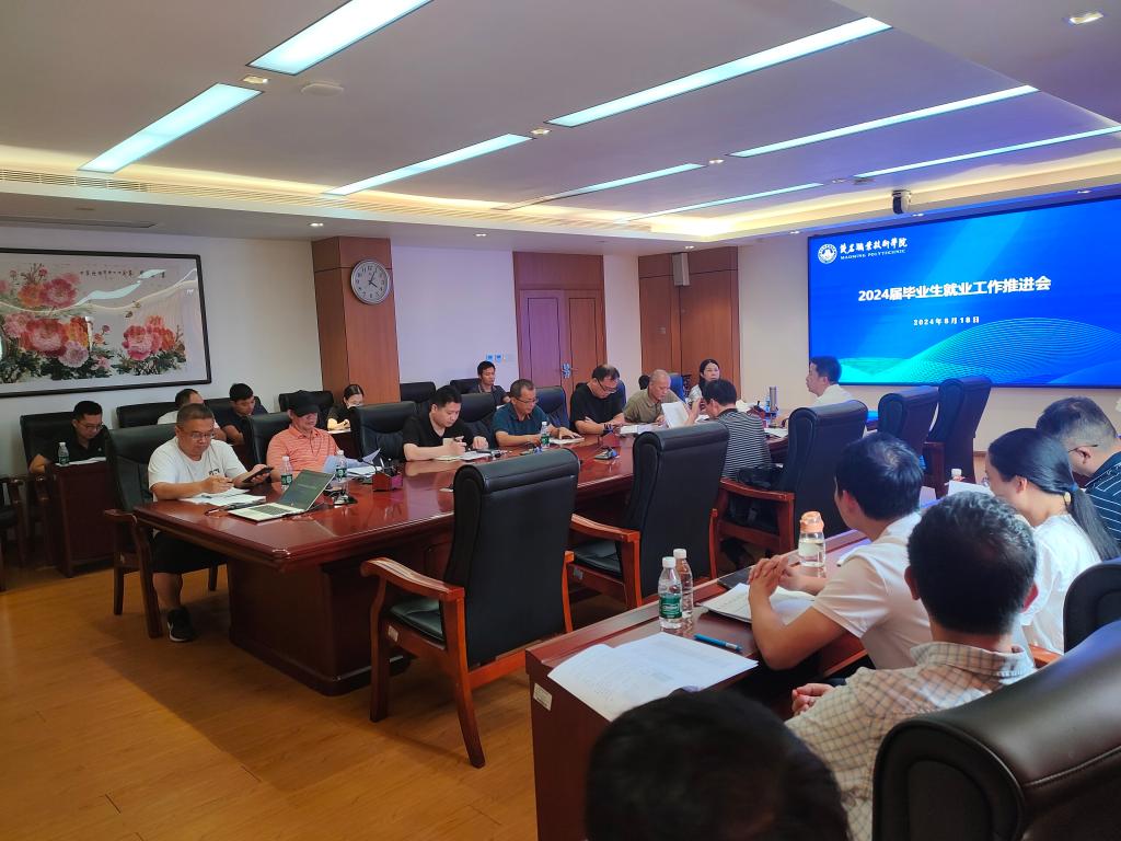 8月18日,学校召开2024届毕业生就业工作推进会。学校副院长董利出席会议并作工作部署。招生就业部负责人、各系分管就业工作党总支书记、副书记,继续教育学院、高州一职就业工作负责人,毕业班全体辅导员和招生就业部相关人员参加会议。