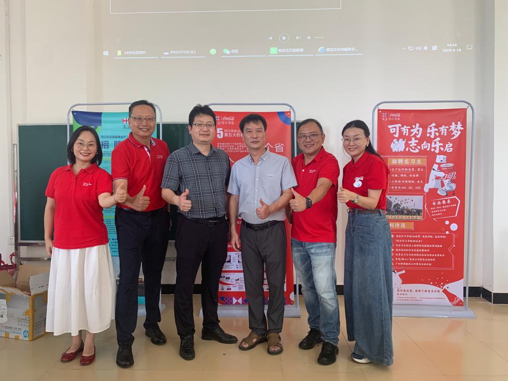 9月19日下午,太古可口可乐2025届毕业生校园招聘宣讲会在南校区教学楼1-201举行。学院副院长董利、化学工程系负责人陈少峰、化学工程系和机电信息系教师代表出席了本次招聘会。22级食品检验检测技术专业、食品质量与安全专业、食品智能加工技术专业,23级食品智能加工技术专业(三二分段)及22级机电相关专业的学生参加了招聘会。
