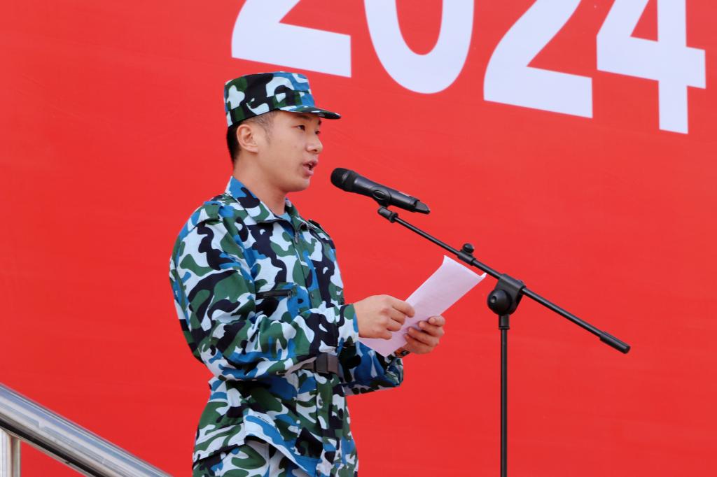 新生代表贺宝龙、李石献分别作为两校区参训学生代表发言。他们表示,军训是激发爱国热情、增强组织纪律、锻炼身体素质,考验同学们毅力和意志的必经之路。号召全体参训同学充分认识军训的意义,增强军训意识,以振奋的精神面貌,接受军训考验,严肃认真对待军训,端正军训态度。