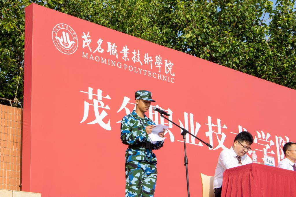 大会在庄严的国歌声中拉开帷幕。党委专职副书记董荣权,党委委员、副院长杨云分别在南校区和北校区作开训动员讲话。他们指出,大学生军训是人才培养和立德树人的重要环节,通过军事训练,能有效使同学们强健体魄,培养坚强意志,提高综合素质,进一步强化同学们的国防观念,厚植爱国情怀。他们希望同学们以饱满的热情、坚定的信念、顽强的意志,面对军训的各项任务和挑战,相信自己的潜力和能力,不断超越自我,锐意争先,用良好的精神面貌,展现茂职学子的时代风采!