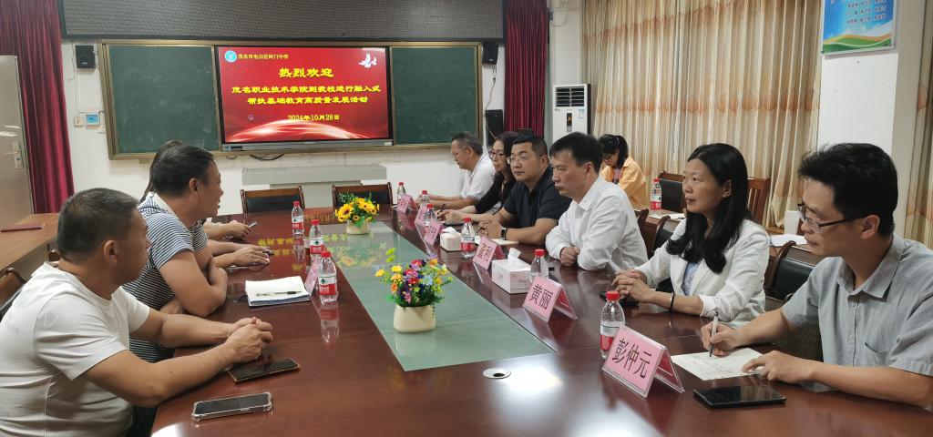 座谈会上,岭门中学陈旭华校长对学校近年来的融入式帮扶表示衷心感谢,详细介绍了岭门中学的基本情况和取得的成绩,并表示学校成绩的取得离不开茂名职业技术学院的大力支持。
