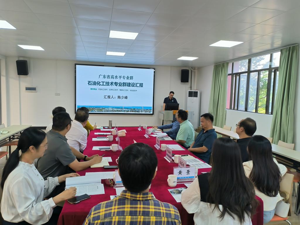 然后,化学工程系负责人陈少峰向来访一行详细介绍了石油化工技术专业群的建设情况。主要从人才培养模式、开发课程资源、教学改革等多方面建设成效进行了分享。