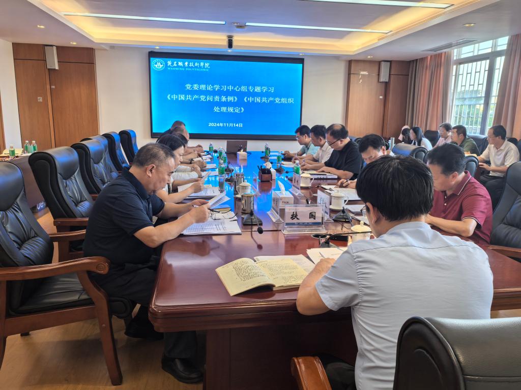 11月14日下午,学校党委理论学习中心组召开第22次学习(扩大)会议,集体学习《中国共产党问责条例》《中国共产党组织处理规定》。党委书记扶国主持学习,中心组成员,各单位、各部门负责人,各党总支书记、副书记参加了集体学习。