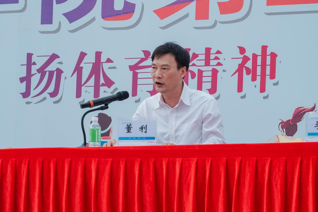 副院长董利致闭幕辞。他代表本届运动会组委会向在比赛中取得优异成绩的集体和个人表示热烈的祝贺,向为筹备本届运动会付出辛勤劳动的全体工作人员表示衷心的感谢。他希望,全体师生把运动会上团结奋斗、乐观活泼、锐意进取的精神发扬光大并融入到今后的学习、工作和生活中去,争取在各方面取得更好的成绩,不断开创学校体育工作的新局面,凝心聚力推动学校各项事业高质量发展。