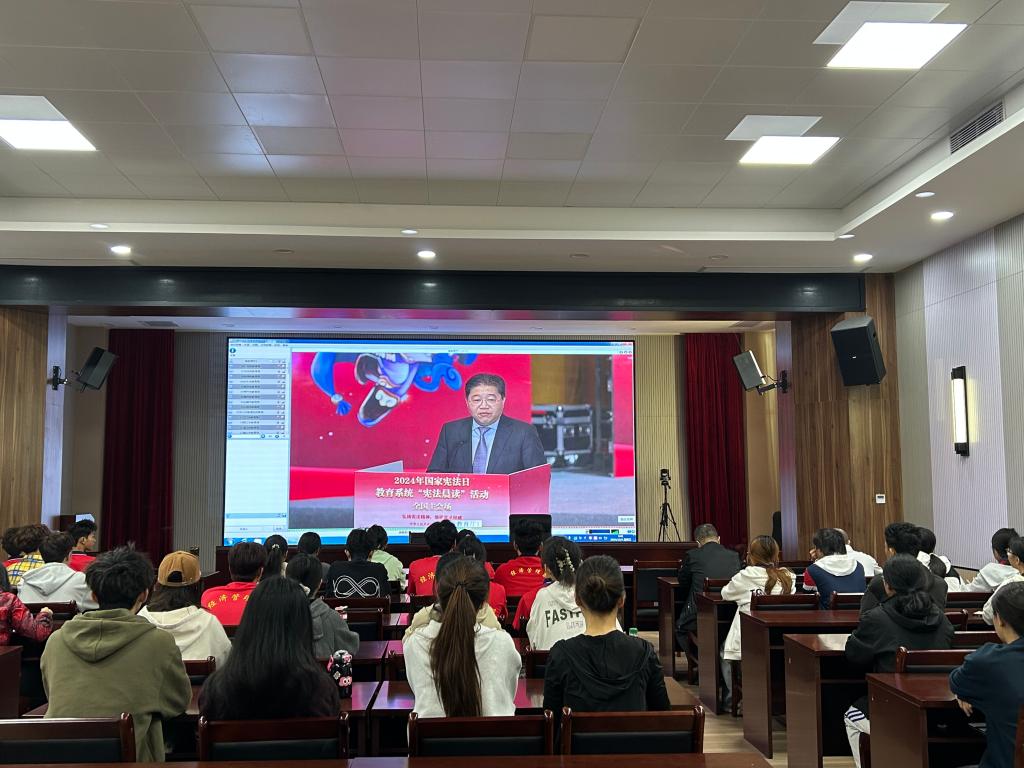 12月4日是第十一届国家宪法日,教育部组织开展2024年国家宪法日“宪法晨读”活动。为深入学习贯彻党的二十大、二十届三中全会和全国教育大会精神,加强宪法法治教育,弘扬宪法精神,维护宪法权威,我校组织师生代表在南北校区各设分会场同步收看网络直播参加了活动,活动在庄严的升旗仪式中拉开序幕。