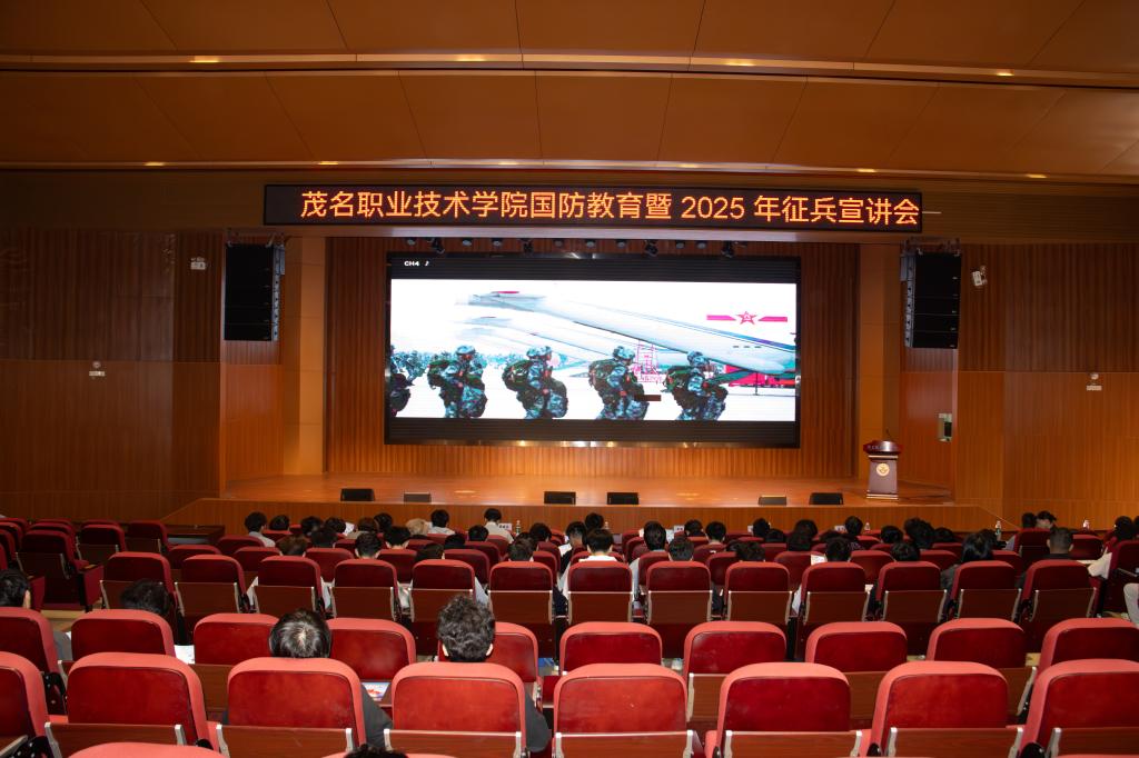 茂名军分区动员处、茂南区、电白区、信宜市人武部领导,广东省优秀退役大学生士兵代表彭日锋、钟桂丰、候樱、唐新雨、黄慧怡,茂名市最美退役军人朱强,广东茂名健康职业学院学生代表,学校武装部负责人黄焕宝以及南校区500多名毕业班学生出席宣讲会,会议由保卫科科长凌志锋主持。