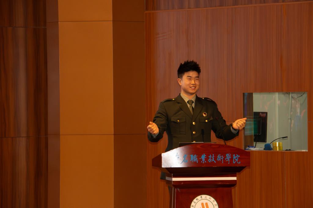 最后,学校武装部负责人黄焕宝作总结讲话,希望同学们积极响应号召、踊跃报名参军,把爱国之情、报国之志化为参军入伍的实际行动,用青春和热血践行国防事业的“中国梦”。