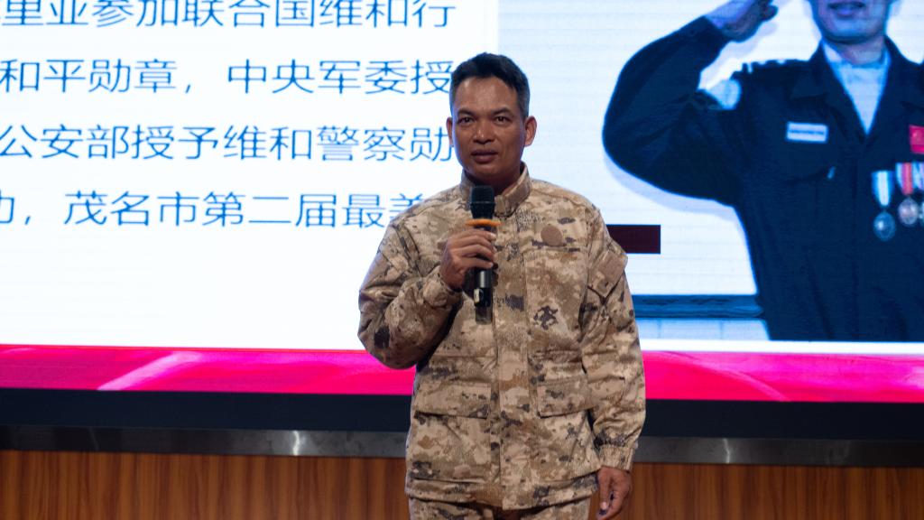 在宣讲会上,五位优秀退役大学生士兵激情洋溢地为同学们分享了他们携笔从戎、参军报国的青春梦想和由衷感悟,讲述了自己由一名普通大学生成长为优秀士兵的难忘经历与回忆。茂名市最美退役军人朱强分享了自身的从军经历和深刻感悟做了热情洋溢的动员讲话。