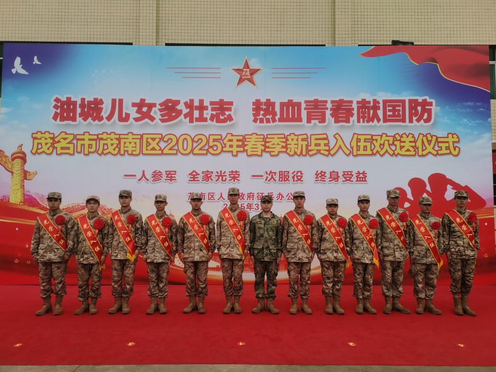3月15日上午,茂南区在茂名市国防教育基地隆重举行2025年春季入伍新兵欢送仪式,热烈欢送优秀青年光荣参军。