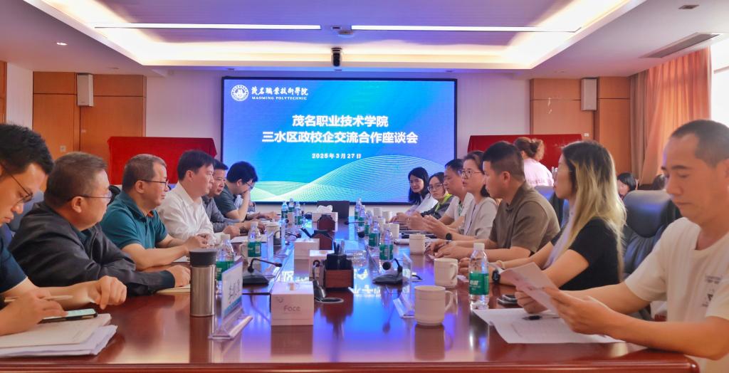 3月27日下午,茂名职业技术学院——佛山市三水区政校企交流合作座谈会在学院北校区举行。佛山市三水区人力资源和社会保障局副局长黄丽琼率三水区重点企业代表参会。学院副院长董利,招生就业部部长、各系党总支副书记,招生就业部相关人员出席座谈。