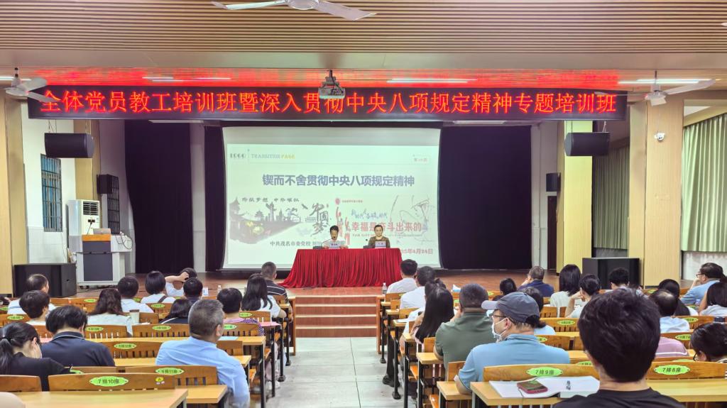 4月24日下午,全体党员教工培训班暨深入贯彻中央八项规定精神专题培训班在北校区小礼堂举办,特邀市委党校刘艳副教授到校作辅导报告。全体党员教职工、各级领导干部共计300余人参加培训,本次培训班由学校党委专职副书记董荣权主持。