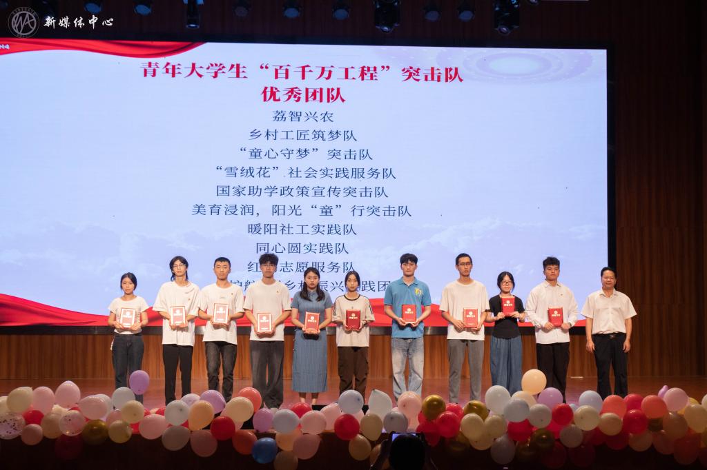 在团歌会上,青年在团歌会决赛、五四表彰大会、青年大学生突击队颁奖晚会上,与会领导为在青春赛道上奋力奔跑的集体与个人颁奖。