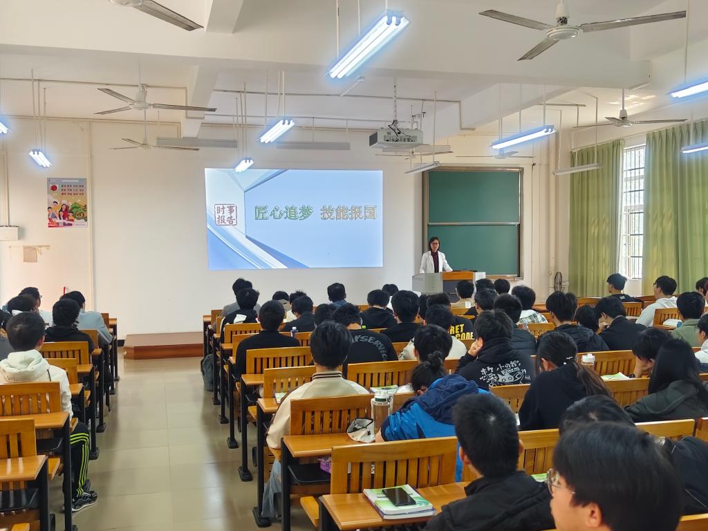 3月19日上午,茂名职业技术学院副院长张蓝青以《匠心追梦 技能报国——以人口高质量发展支撑中国式现代化》为题,为24级机电系模具、数控专业学子讲授2025年春季开学思政第一课。