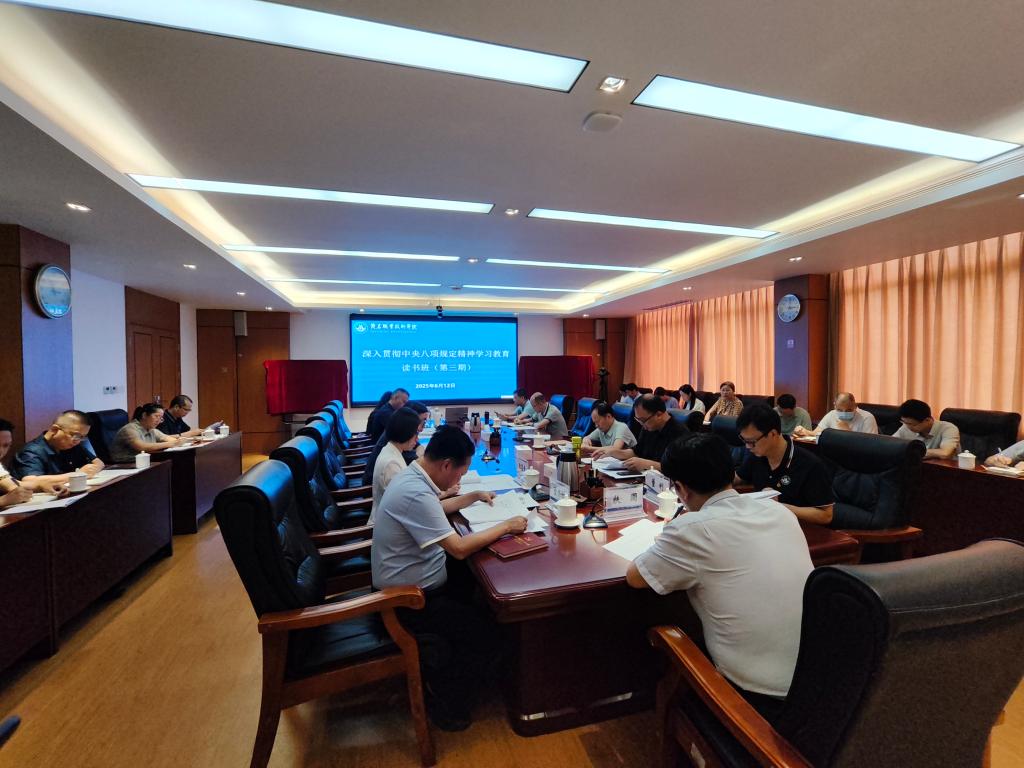 为推动深入贯彻中央八项规定精神学习教育持续走深走实,6月12日下午,学校党委理论学习中心组围绕“认真学习贯彻习近平总书记重要讲话精神 推动深入贯彻中央八项规定精神学习教育走深走实”主题开展专题学习,并进行深入研讨交流。党委书记扶国主持会议并讲话,各单位、各部门负责人,各系党总支书记、副书记,机关党支部书记参加会议。
