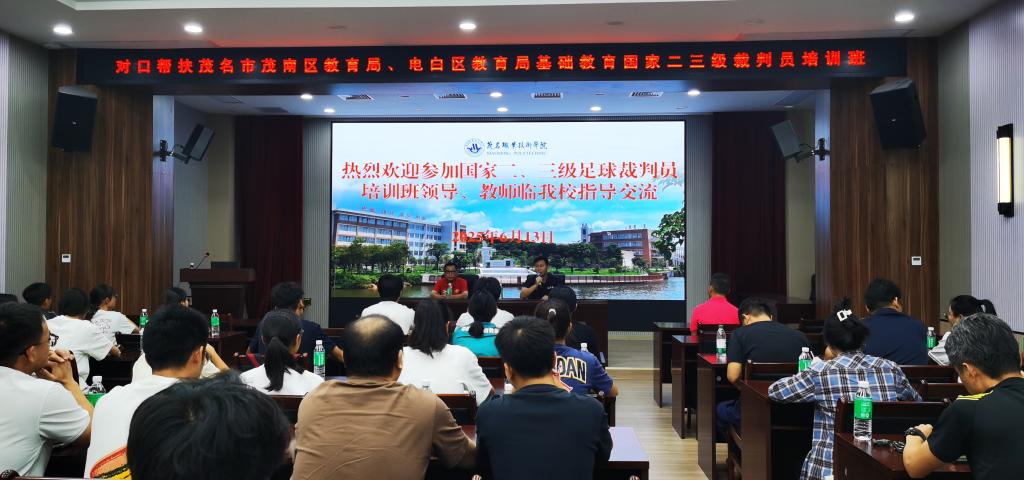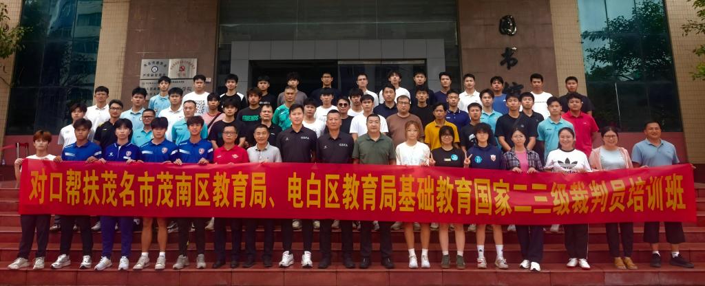 为深入贯彻落实省委、省政府决策部署,全面落实全口径全方位融入式帮扶基础教育高质量发展,切实做好我校对口电白区基础教育帮扶工作,6月13-15日,我校联合茂名市文化广电旅游体育局、广州民航职业技术学院,携手茂南区教育局、电白区教育局、茂名市足球协会共同主办的面向基础教育领域的“国家二、三级足球裁判员培训班”(第二期)在学院北校区顺利举办。来自茂名市中小学校的60名教师参加了培训。