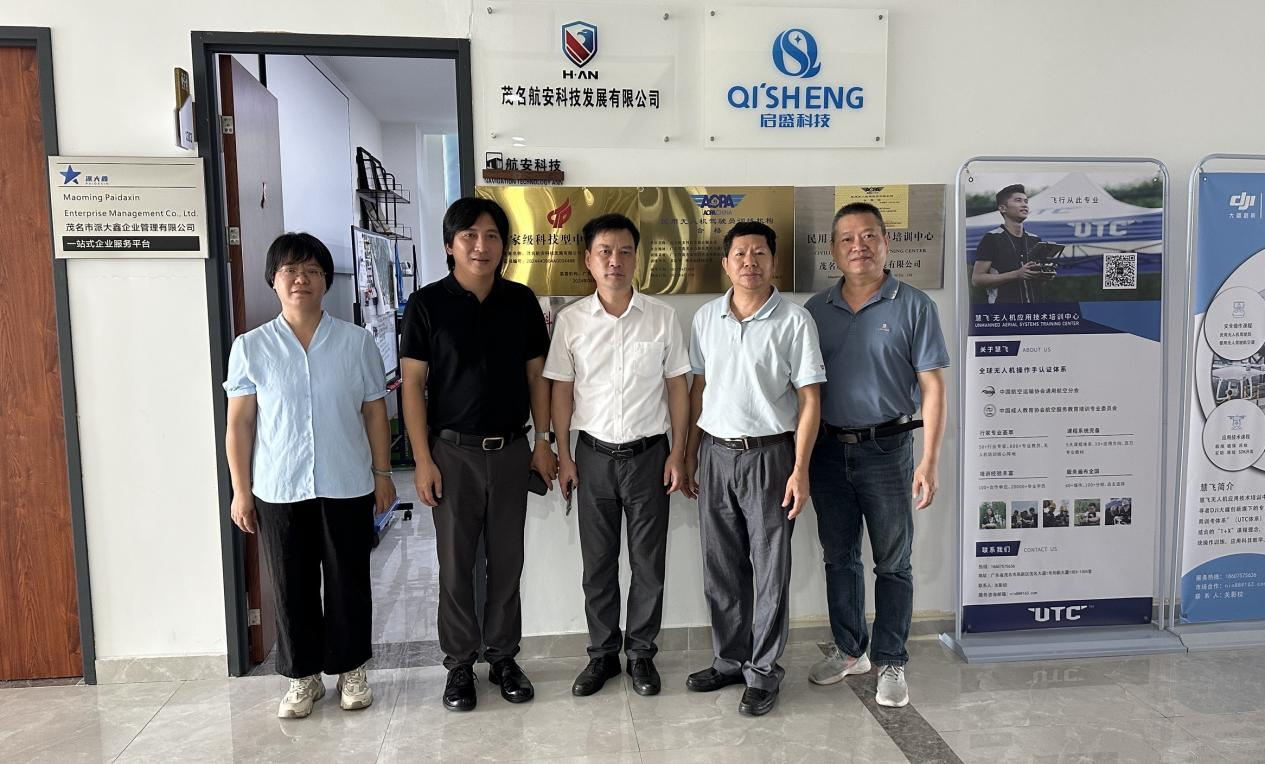 7月11日,茂名职业技术学院副院长董利率机电信息系、继续教育学院负责人一行5人,赴茂名航安科技发展有限公司开展专题调研。本次调研围绕无人机产业应用场景、人才需求标准及专业建设方向展开,为学校新开设的“无人机应用技术”专业提供实践依据,推动教育链与产业链精准对接。