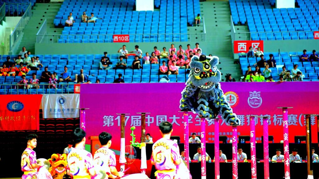 近日,第十七届中国大学生舞龙舞狮锦标赛在湖南第一师范学院圆满闭幕。我校龙狮队凭借精湛的技艺和顽强拼搏的精神斩获了男子高桩自选银牌、女子传统铜牌,荣登团体总分全国八强。